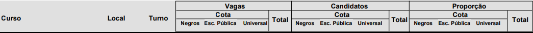 Curso Local Turno Candidatos Vagas Proporção